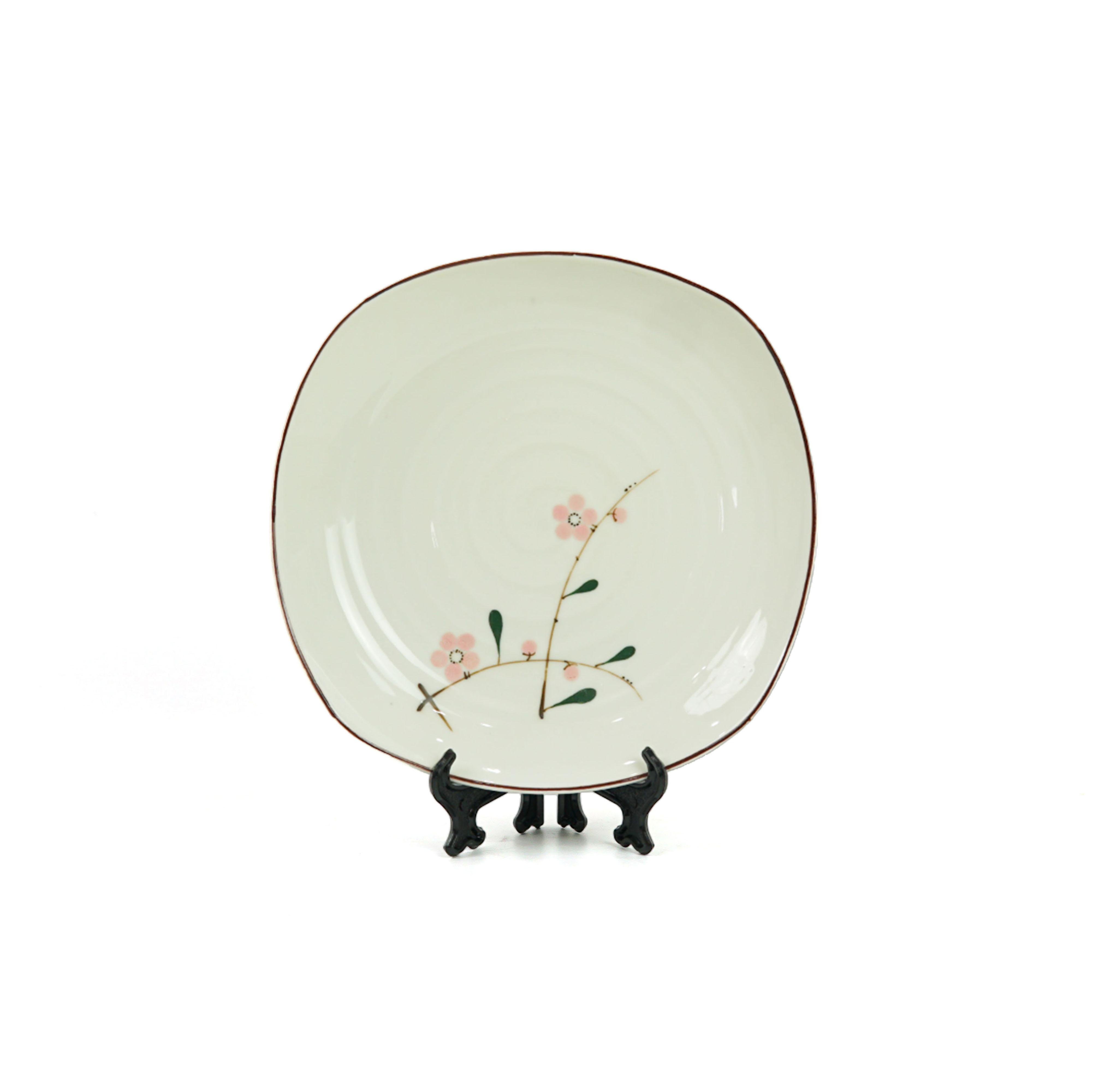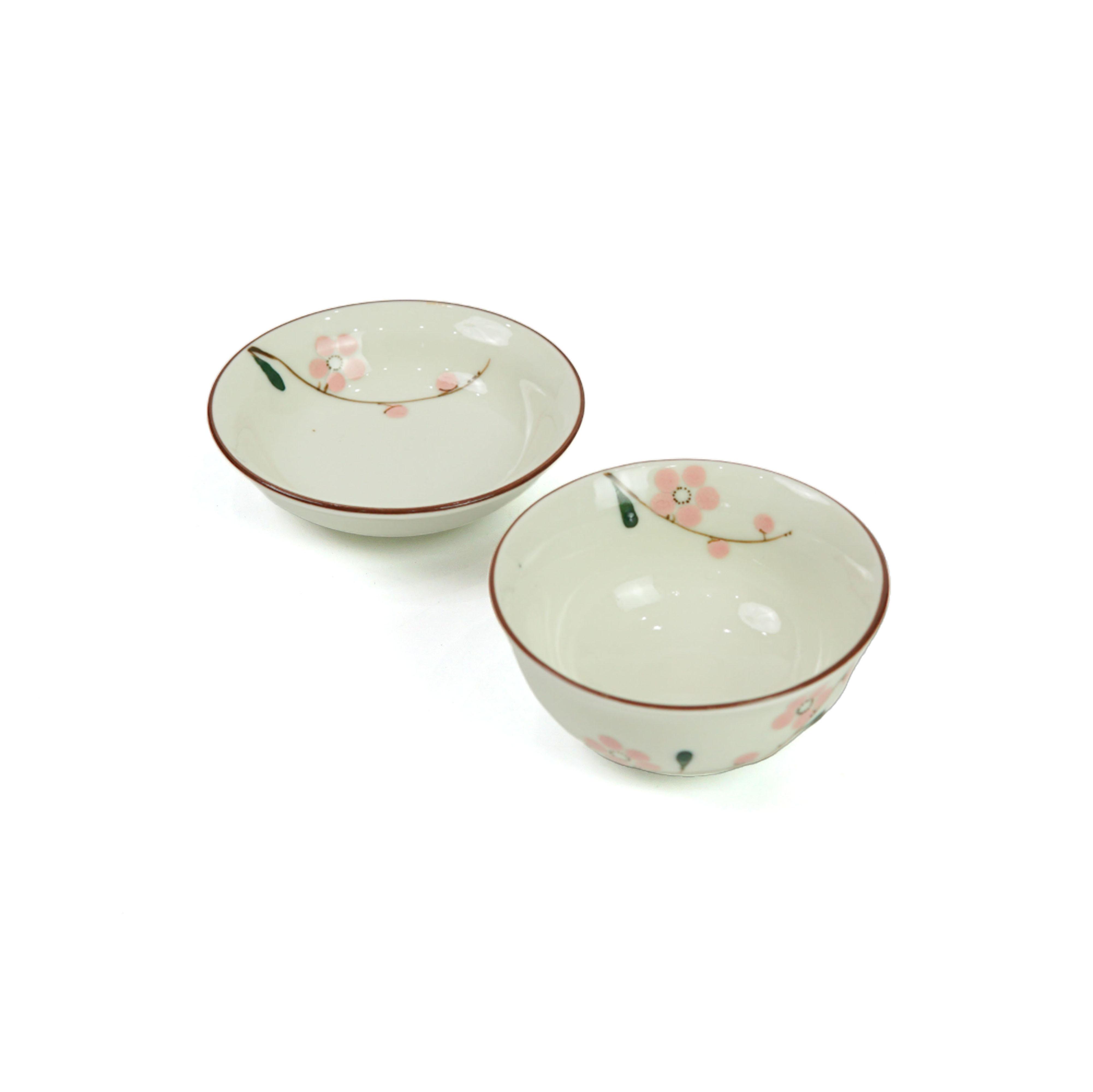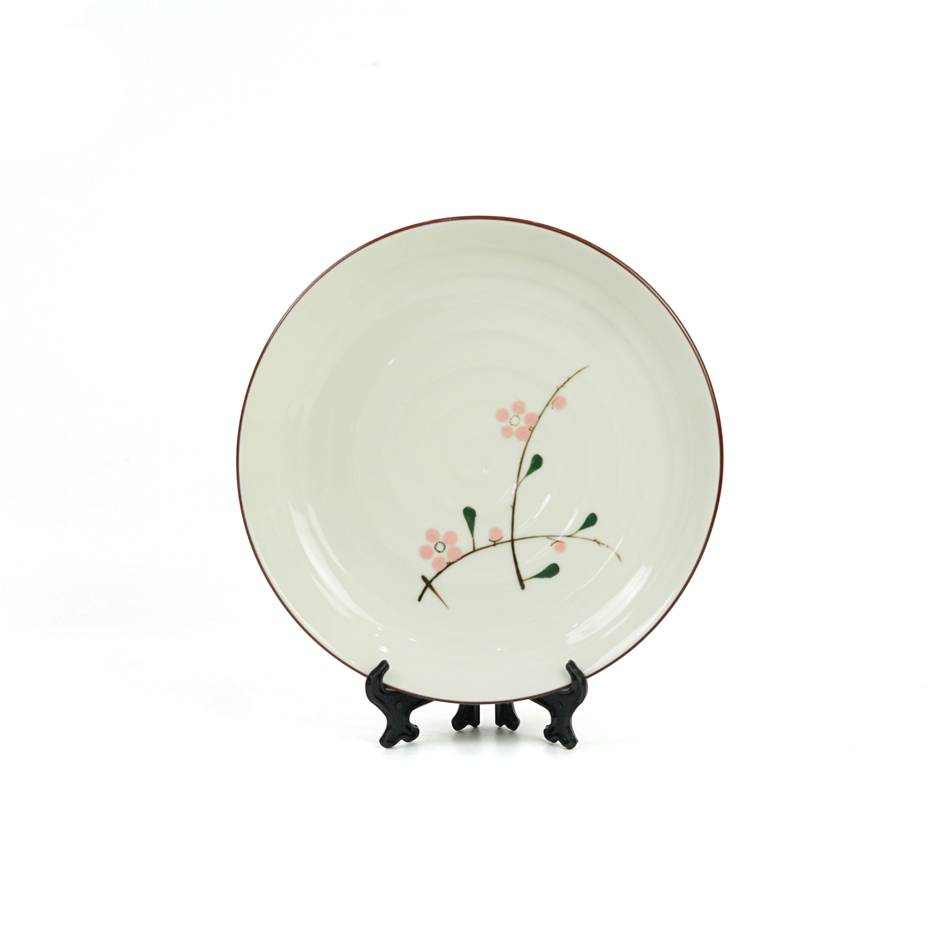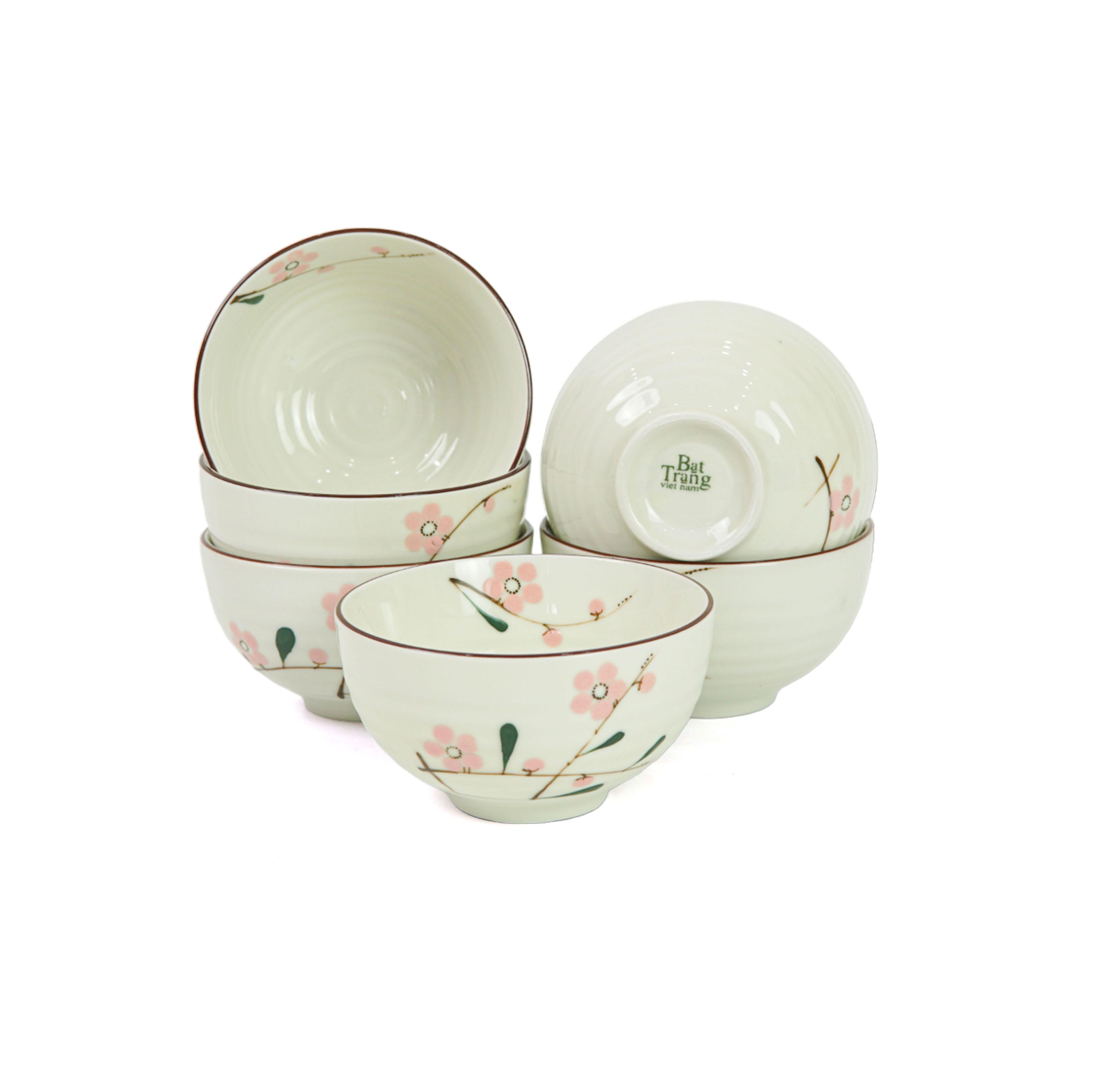Bộ Bát Đĩa Gốm Sứ Bát Tràng Men Kem Họa Tiết Hoa Đào Hồng Vẽ Tay